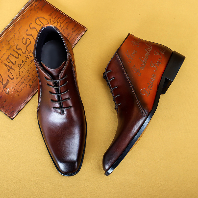 Premium leather dress boots with good gloss, smooth touch