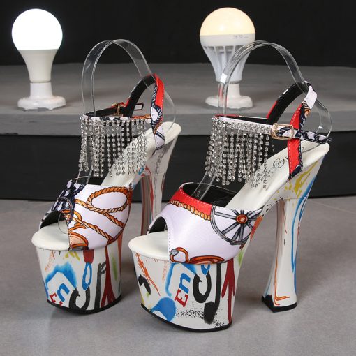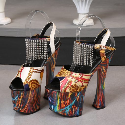 Rhinestone Fringed Heeled Sandals