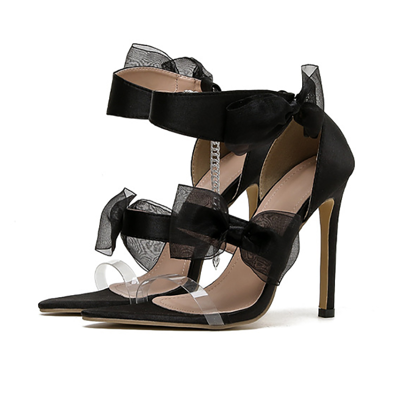 Simple Satin Bow Heel Sandals