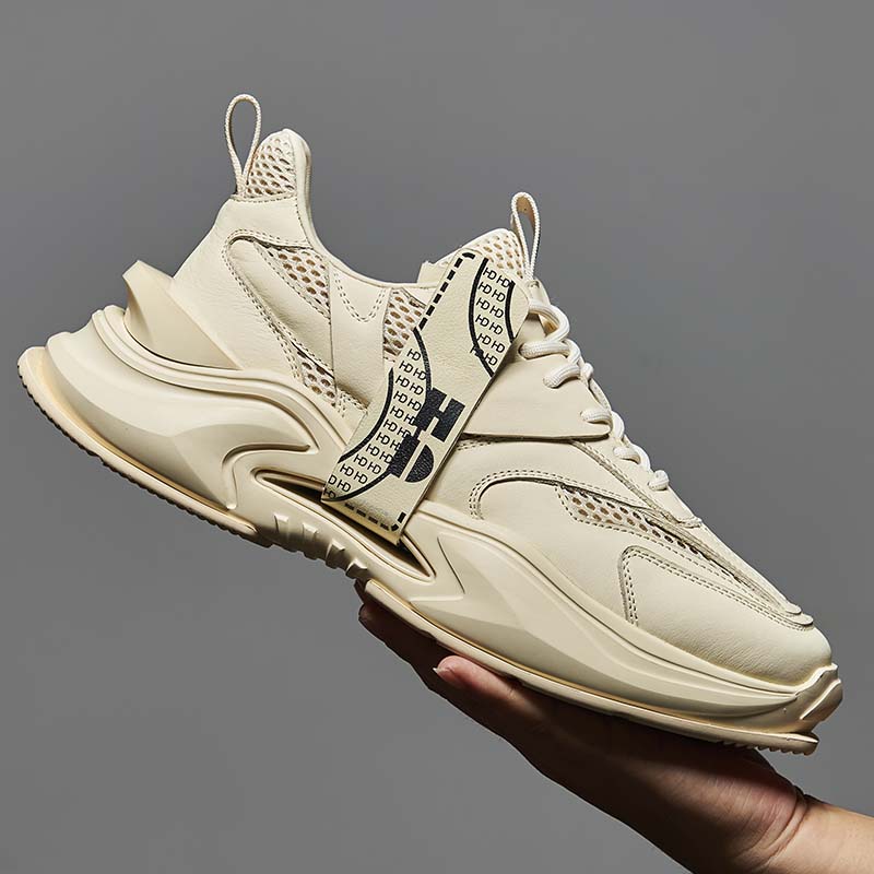Style: Leather stitching, top layer cowhide and mesh mix, the platform raised.