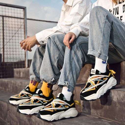 Style: Multi-color laces wrap the shoe body.