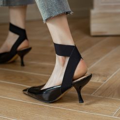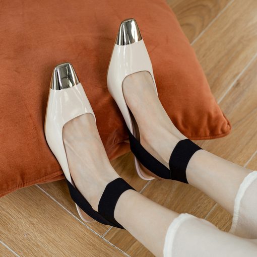 Style: The heel has an elegant curve design, a textured metal head, and a temperament strap design.