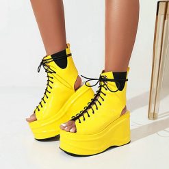 US$109.99Material: Patent leather upper, rubber outsole Style: Lace-up on the vamp, extra-thick-soled sponge cake, hollowed-out design on the vamp, fashionable and trendy. Fit: The standard size is ergonomically designed to reduce the hassle of grinding feet and is easy to put on and take off. Suitable: Suitable for parties, dances,…